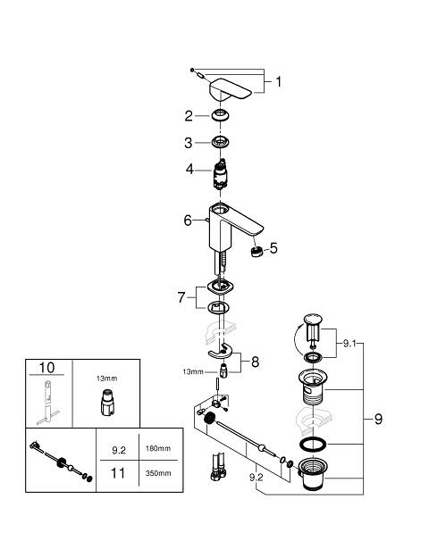 Rounded corners are the striking stylistic feature of the perfectly shaped GROHE Cubeo design line. It is also equipped with the latest technology and first-class quality. The compact design of the mixer tap measures 148mm in height. The GROHE SilkMove ceramic cartridge is not only extremely hard-wearing, but also particularly smooth-running and allows the water supply and temperature to be regulated precisely and easily using the robust metal lever. In the mid-lever position, only cold water is let through, which significantly reduces energy consumption. Thanks to a maximum flow rate of just 3.5 l/min at 3 bar, this tap is particularly economical and efficient in its use of water. The drain can be opened and closed using a pull rod on the back of the tap. With the long-lasting and easy-care GROHE LongLife finish in gleaming chrome, the product always remains in spotless condition. Installation is child's play and uncomplicated thanks to GROHE FastFixation. GROHE Cubeo – designed to match, built to last!